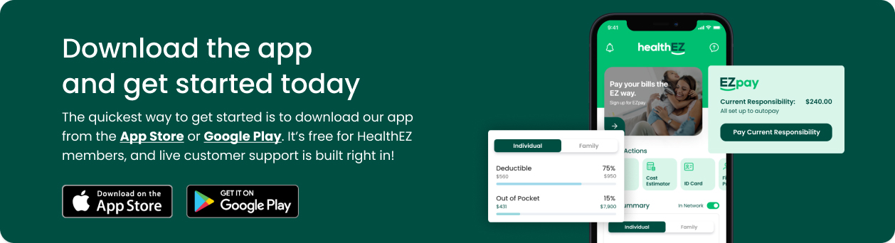 HealthEZ members have access to EZpay—and the rest of the cool things in the HealthEZ app —at no cost. We think dealing with medical benefits and billing shouldn’t be a pain, so we’ve developed digital options with our members in mind.